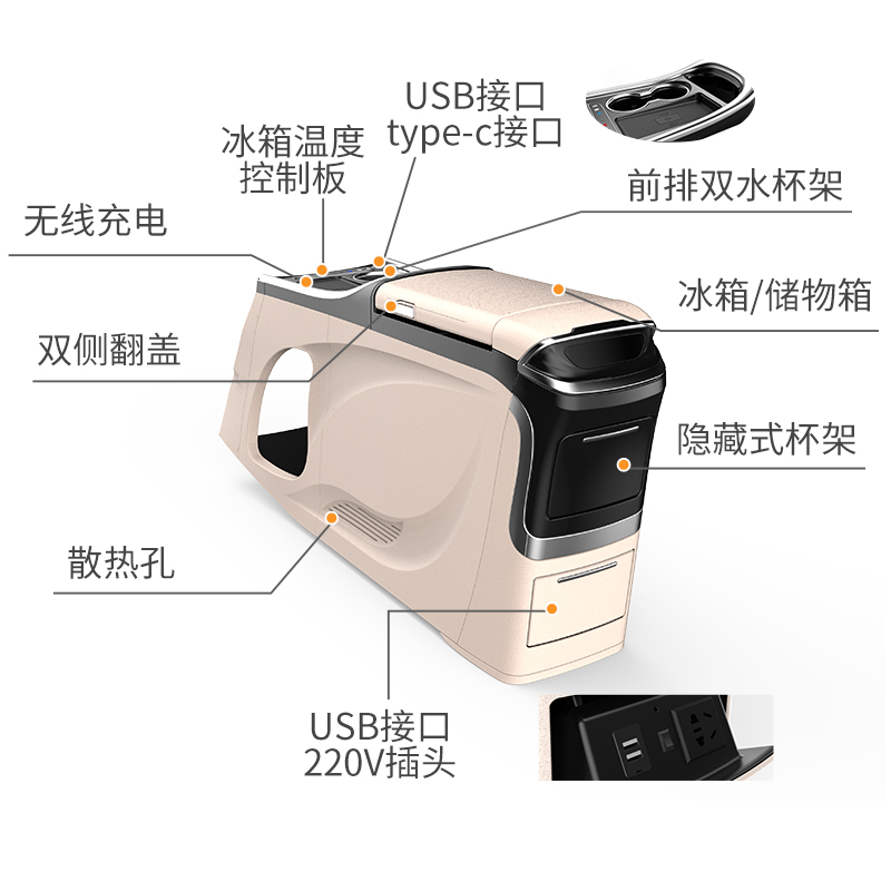 普瑞维亚大霸王中央通道扶手盒储物盒冰箱折叠小桌板内饰改装 配件