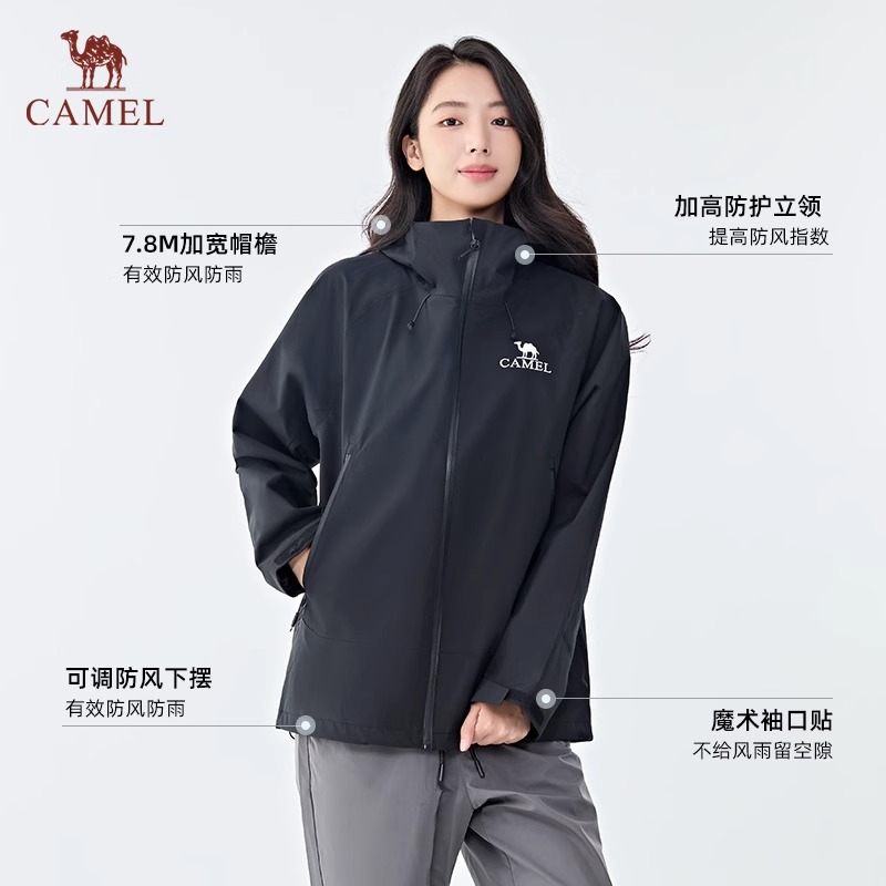 2025新款 骆驼户外硬壳单层冲锋衣女款 防水外套正品 baby同款