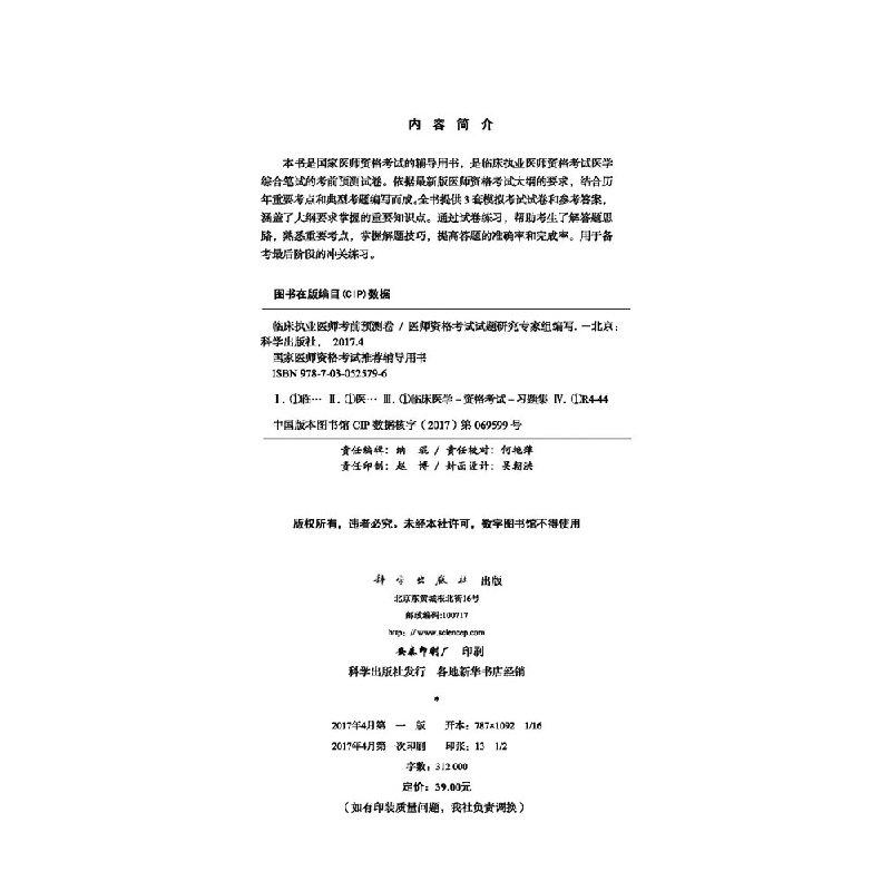 医师资格考试试题研究专家组 2017临床执业医师考前预测卷 官方