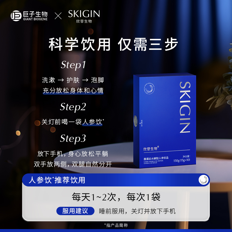 巨子生物SKIGIN欣苷睡眠饮人参饮品酪蛋白水解肽 加购双11预售