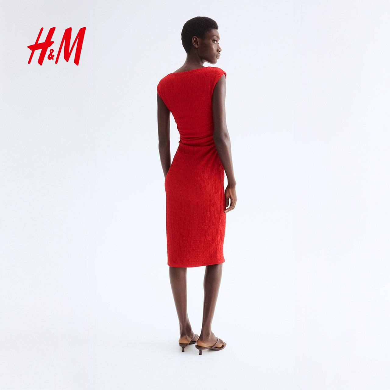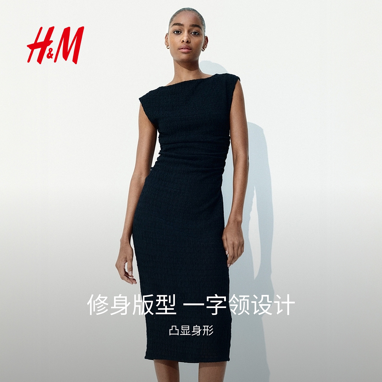 连衣裙1236518 配腰带灯笼插肩袖 HM女士连衣裙秋季 围裹式