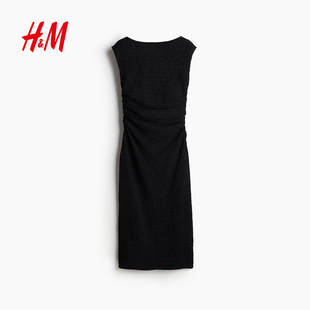 乐町V领针织长裙25年春新款 宽松包容透气背心裙高级感镂空连衣裙