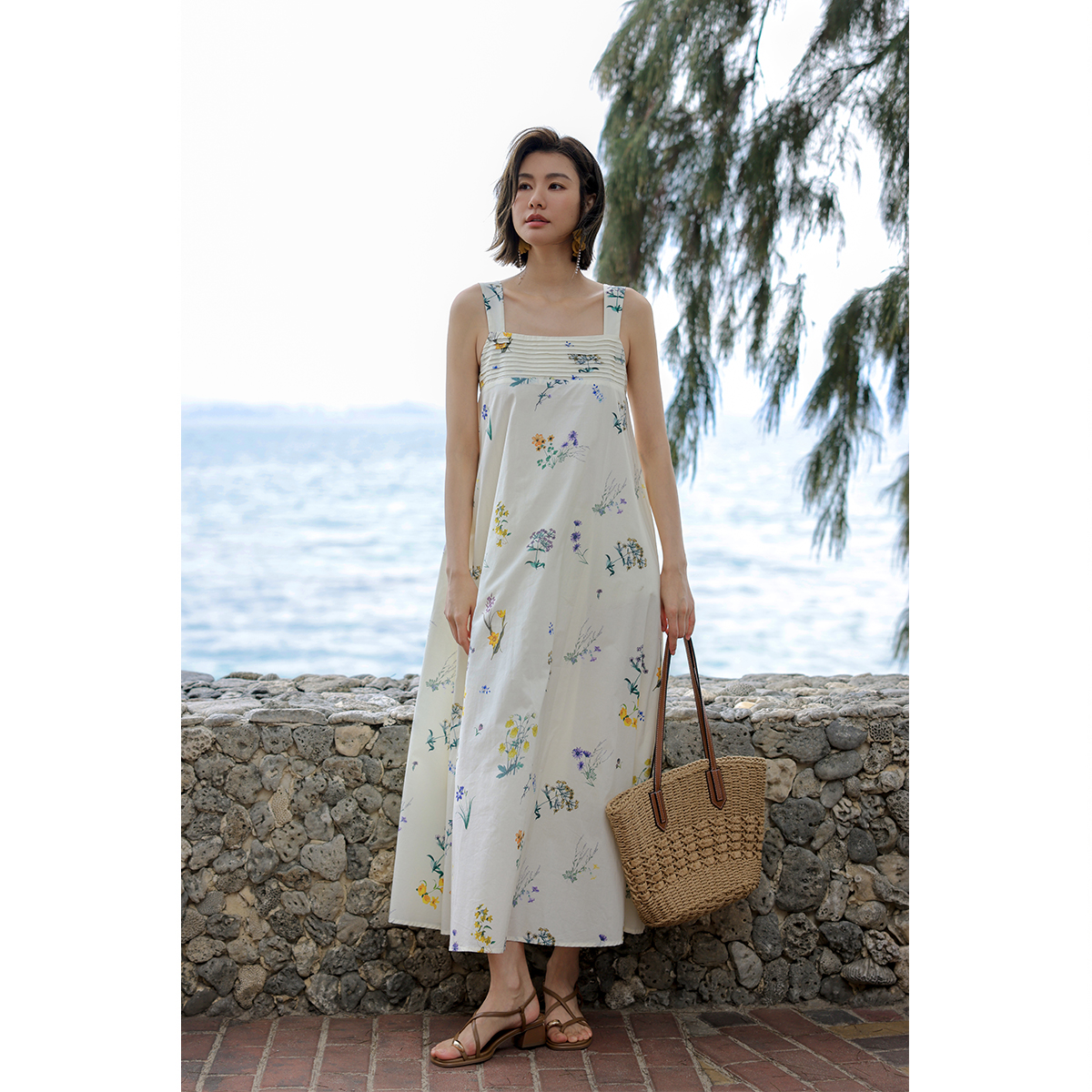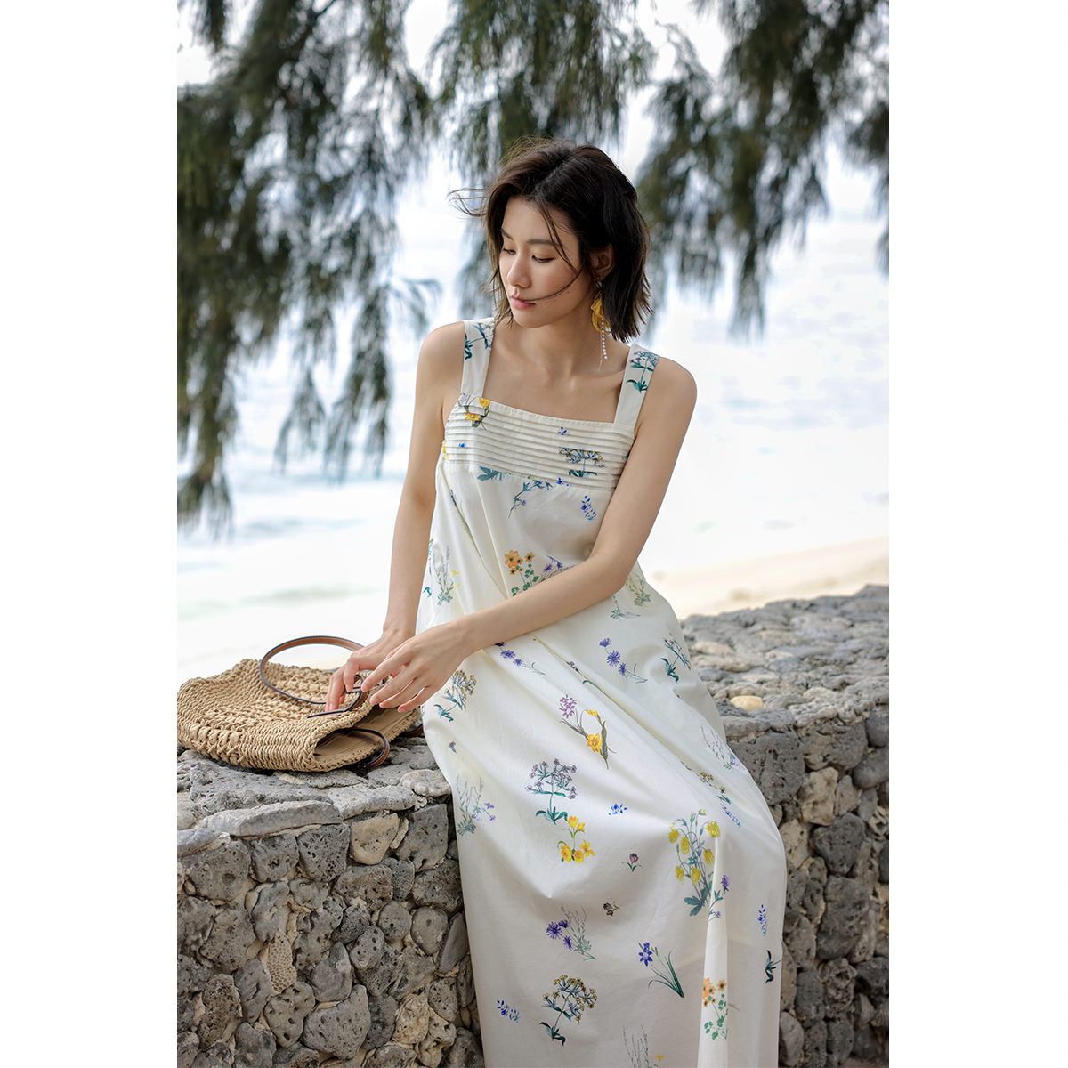法式 新款 气质收腰吊带裙长裙 背心吊带连衣裙女2025夏季 嘉茱莉无袖