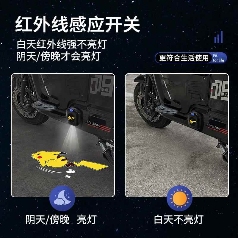 电动车投影灯儿童自行车动态迎宾灯摩托皮卡丘奥特曼改装 饰夜骑灯