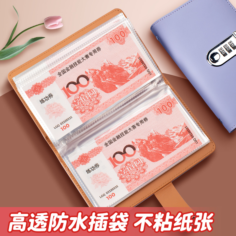 收藏册可放现金 锁儿童理财人民币纸币钱币一万元 2025年新款 存钱夹钱册现金存钱本大容量网红钞票收纳册密码
