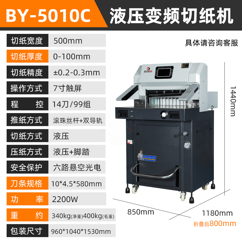 宝预BY5010C重型液压切纸机大型全自动裁纸机印刷厂小型裁切机程控自动裁纸刀电动切纸器图文大型设备切10CM