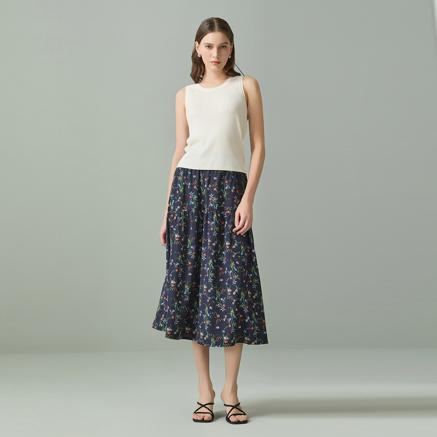 设计师款 纯棉松紧腰a字半身长裙18465827 佐丹奴灯芯绒伞裙女新款