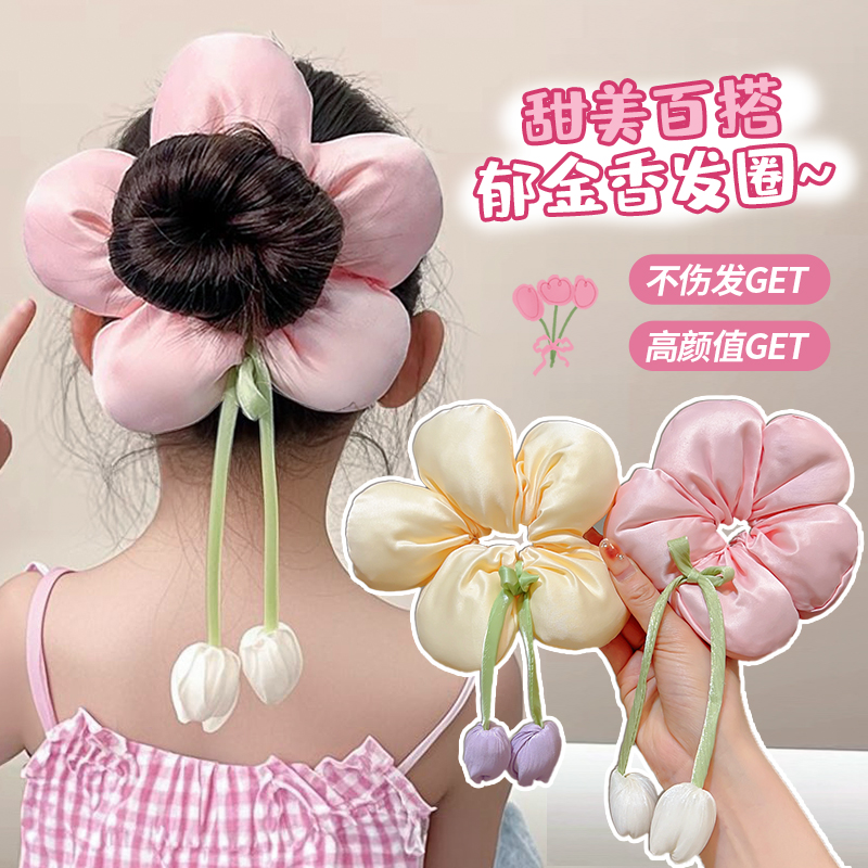郁金香发圈2025新款 甜美儿童韩系飘带小女孩发绳百搭大肠发圈发饰