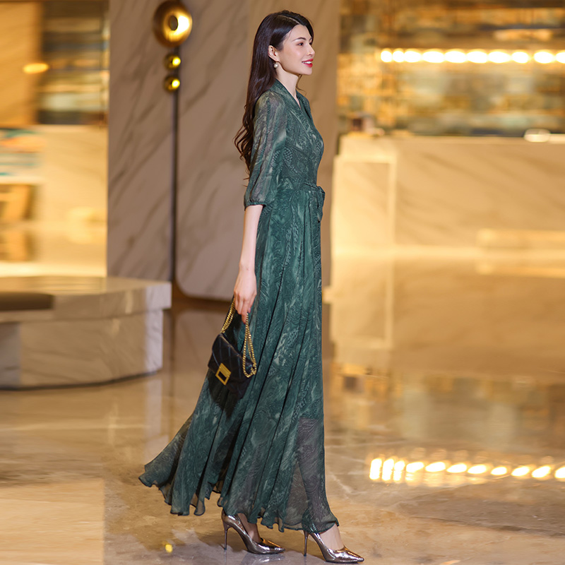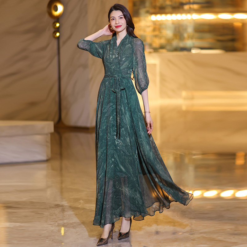 显瘦大摆度假风连衣裙15 高端修身 雪纺气质长裙女夏2025新款 长袖