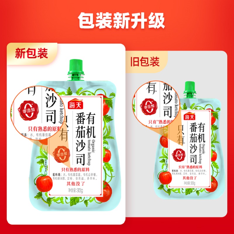 海天有机番茄沙司305g 2宝宝儿童调料蘸料意面薯条鸡翅番茄酱