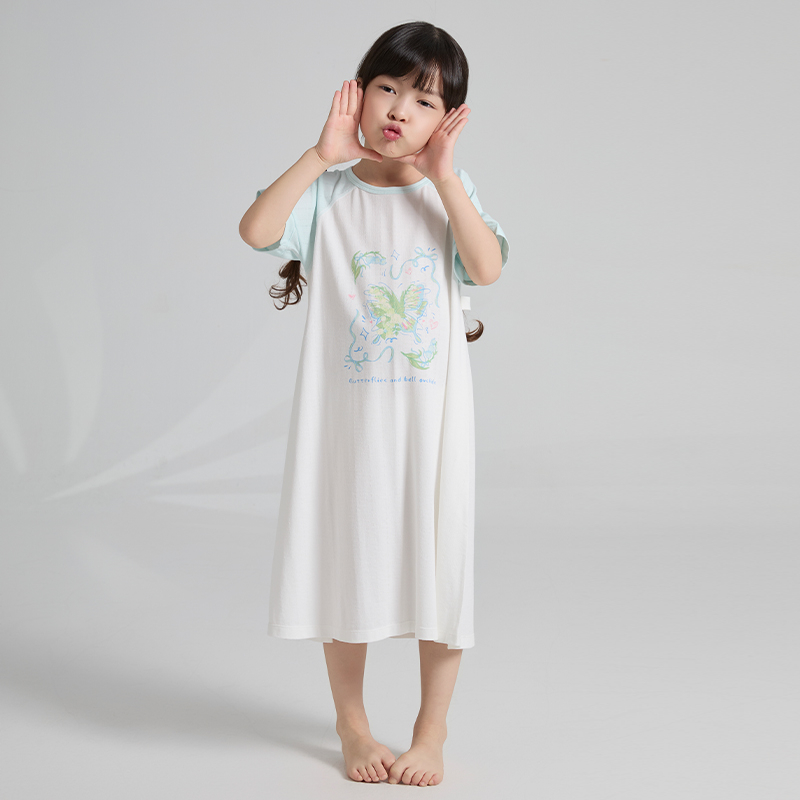 乐友 印花舒适柔软童装 歌瑞家25夏季 女童莫代尔连衣裙睡衣裙中长款