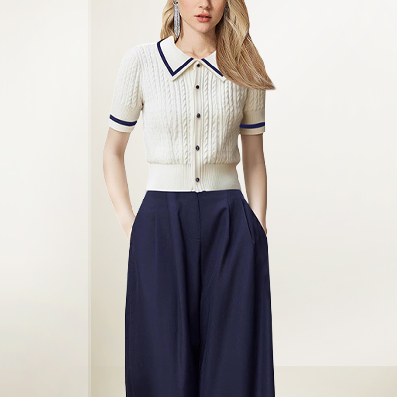 通勤白色上衣阔腿裤 女2025年秋新款 职业两件套 气质高级感套装 法式