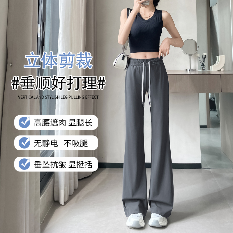 百搭显瘦宽松休闲速干裤 冰丝微喇裤 高腰垂感喇叭阔腿裤 薄款 女夏季