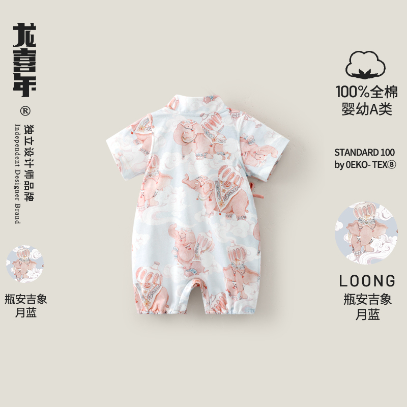 龙喜年婴儿宝宝衣服男新生棉汉服满月抓周满月百天百岁宴女连体夏