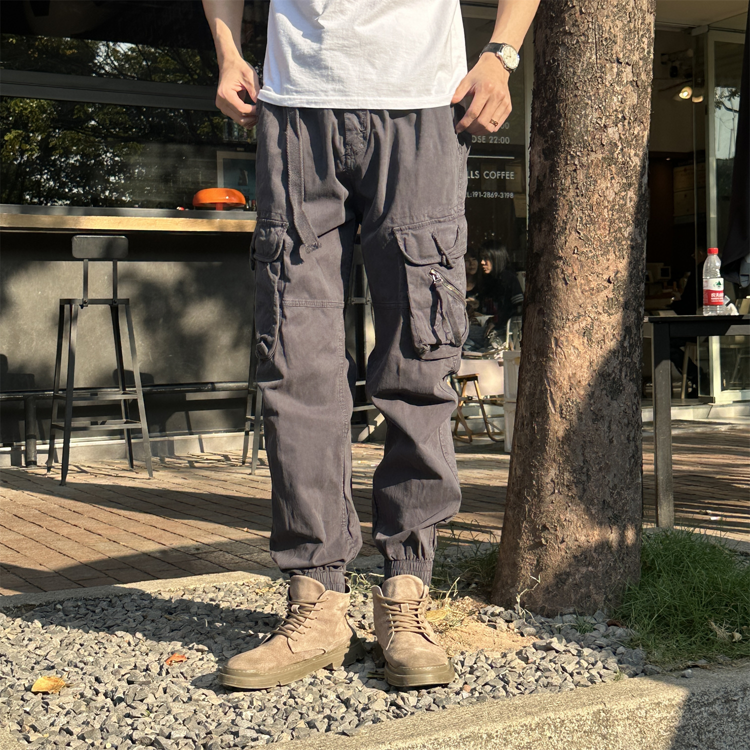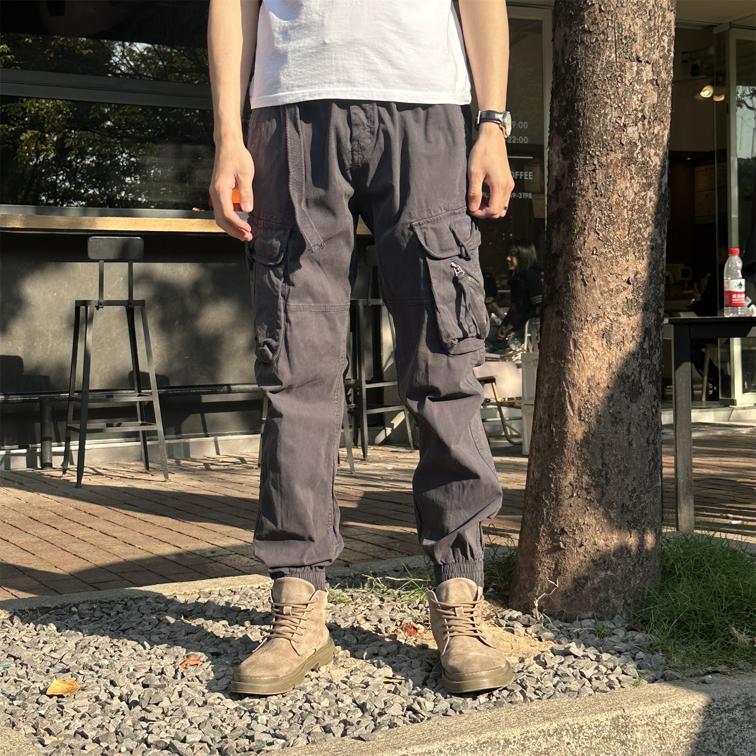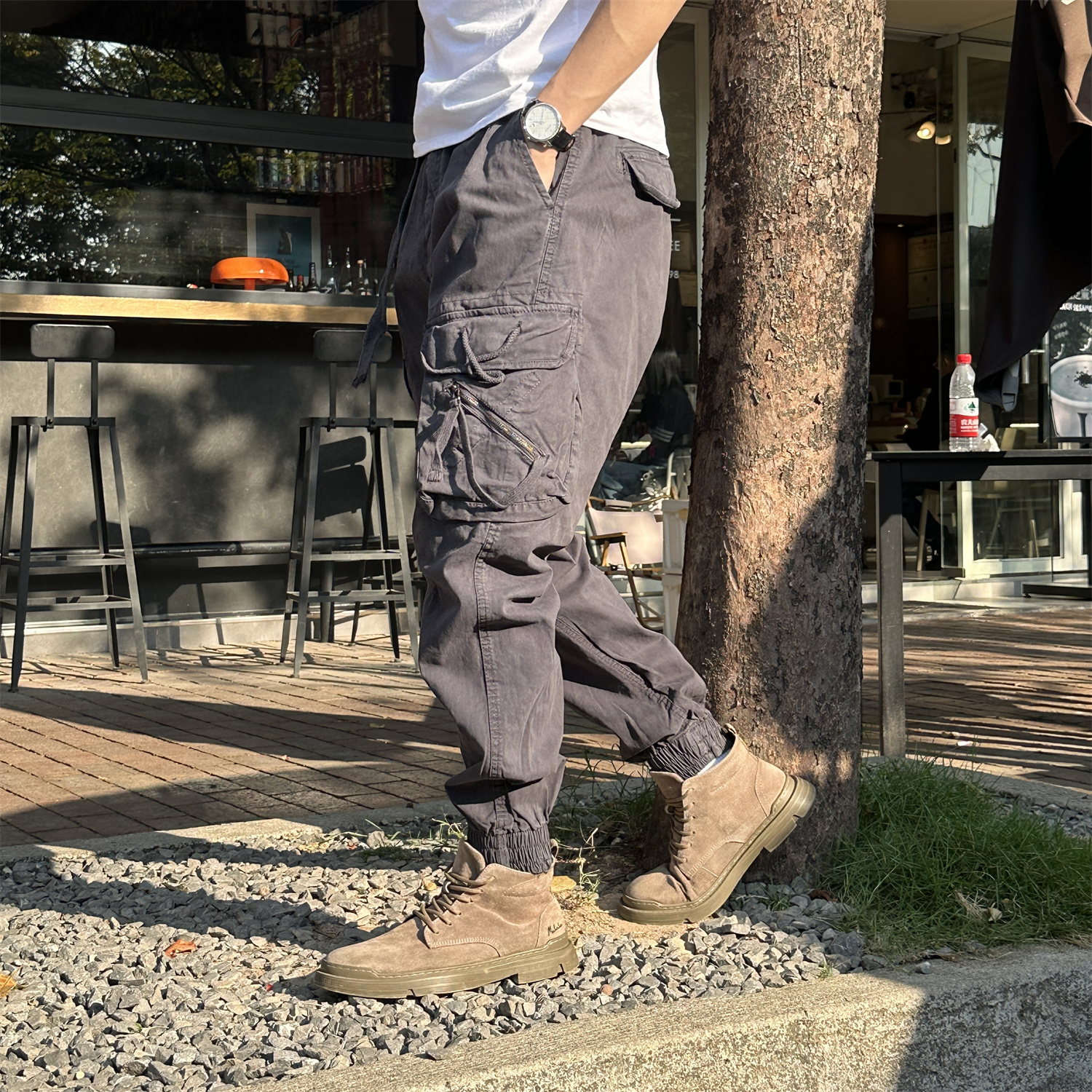 秋冬宽松束脚潮牌休闲长裤 裤 子 机能痞帅松紧腰系带工装 2025年男款
