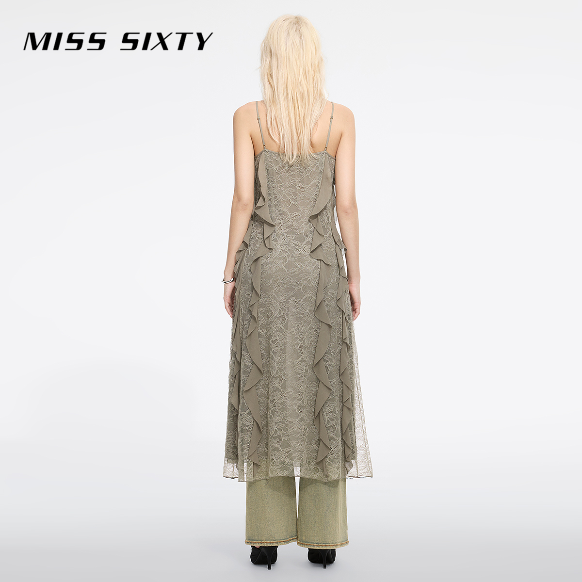 连身连衣裙吊带法式 Sixty25春秋新款 Miss 度假荷叶边 杨幂同款