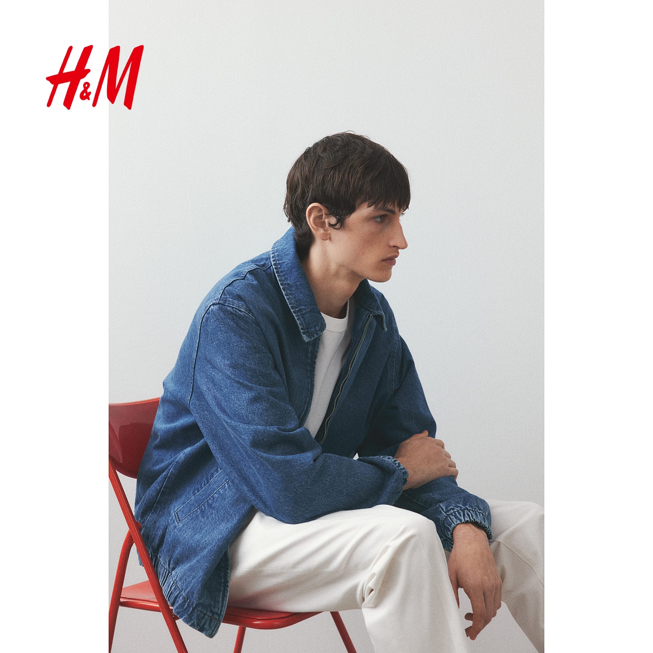 热风女士夹克外套上衣2025年秋季 撞色拼接翻领复古牛仔外套 新款