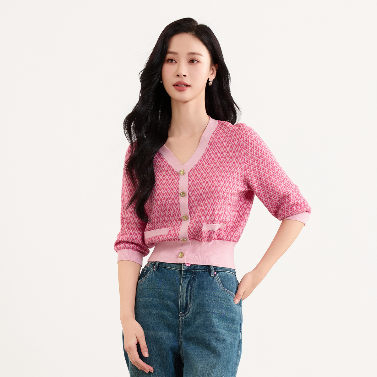 商场同款 2025新款 森马针织开衫 春季 基础圆领上衣 女短款 森柔毛衫