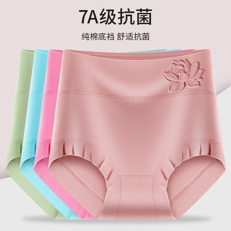 女士女生三角裤 大码 高腰无痕抗菌加长裆新款 菇娘家零染棉纯棉内裤