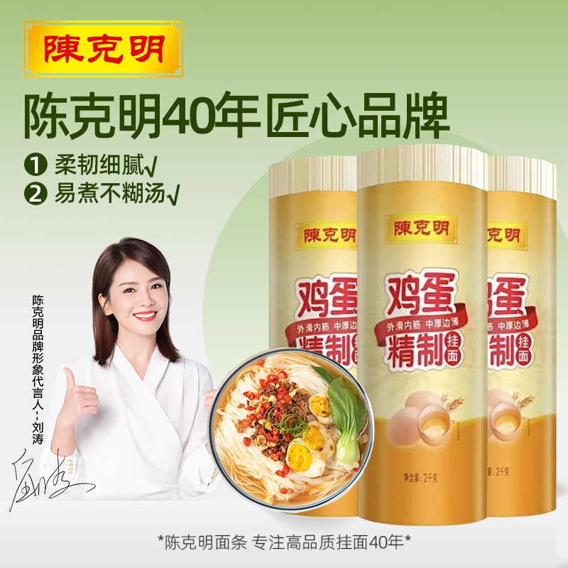 陈克明鸡蛋面条挂面宽圆细面2kg非早餐龙须面精致原味散装 劲道