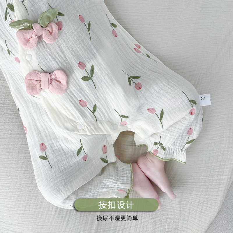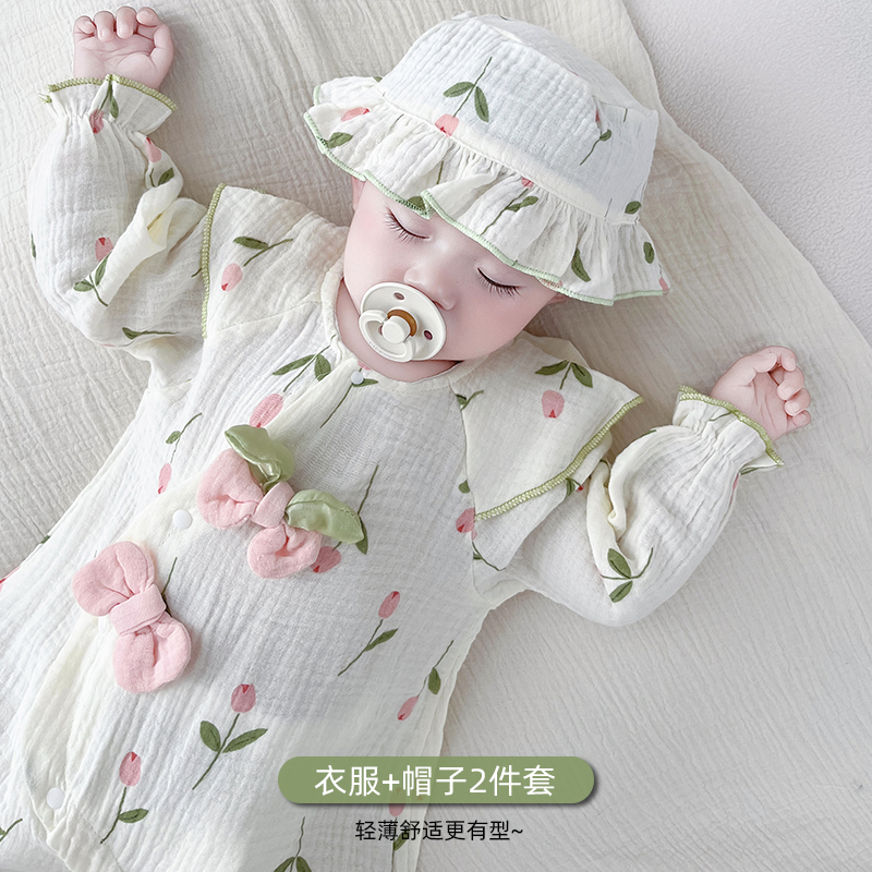 婴幼儿公主风春款 纱布连体衣女宝宝初夏纯棉洋气超萌哈衣外出爬服