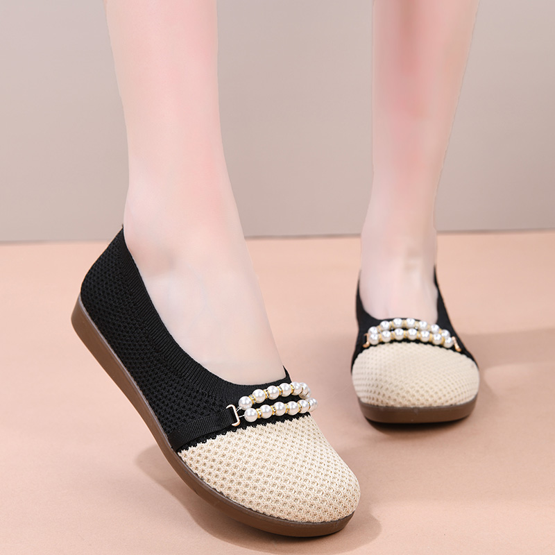 妈妈鞋 软底舒适时尚 平跟小薄底飞织网面透气 女鞋 老北京布鞋