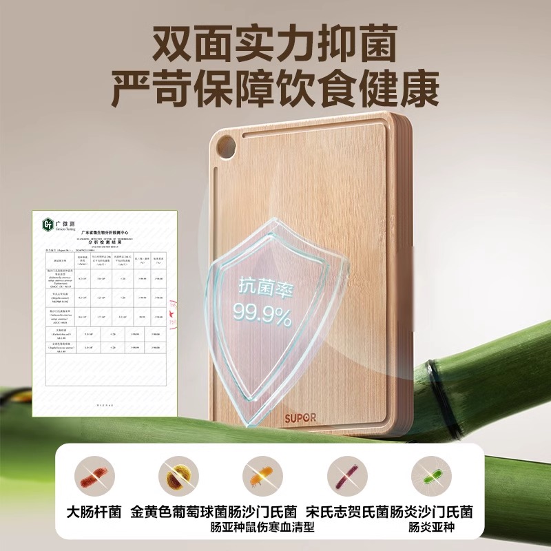 苏泊尔切菜板抗菌防霉家用水果砧板厨房双用面板小案板竹粘板刀板