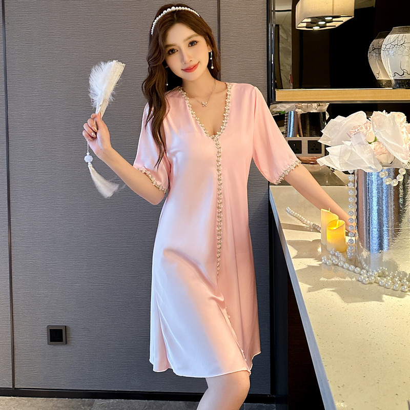连衣裙空调房家居服睡衣 睡裙冰丝凉感短袖 高档夏季 女冰感2025新款