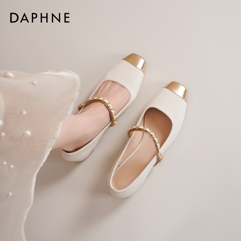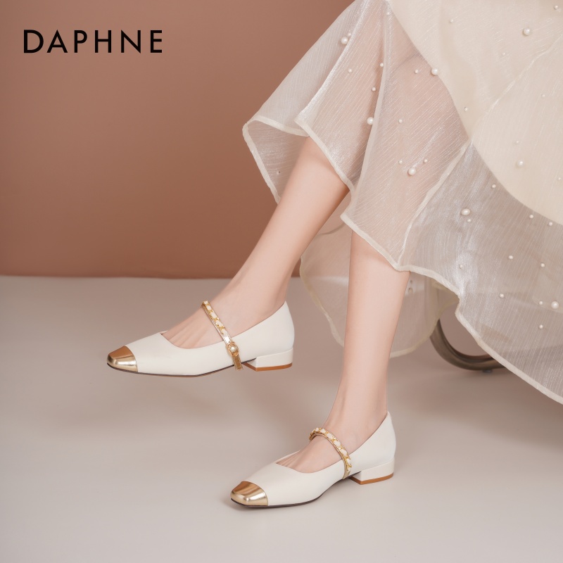 小香风一字扣浅口低跟玛丽珍女鞋 达芙妮法式 春季 女2025新款 子 单鞋