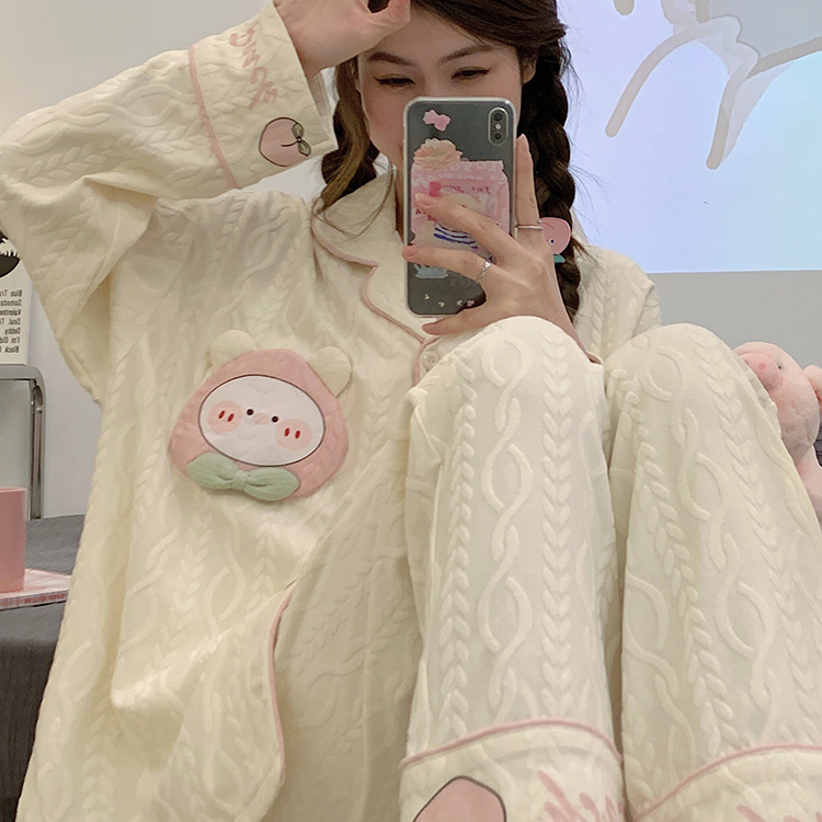 甜美可外穿家居服套装 猫人纯棉长袖 开衫 2025秋新款 睡衣女士春秋季