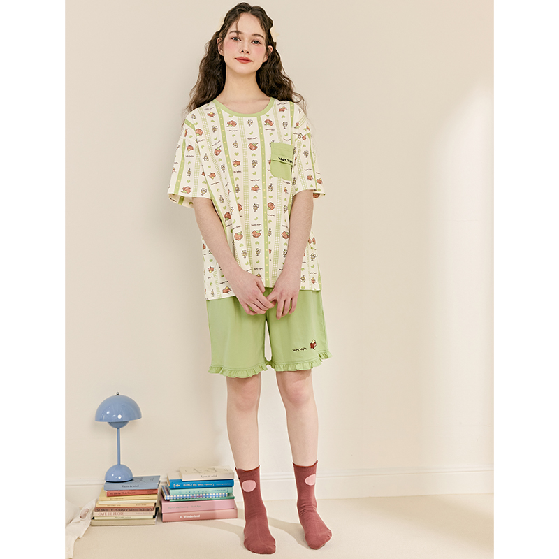 卡通布朗熊家居服可外穿宽松套装 凉感薄款 短袖 芬腾纯棉睡衣女夏季