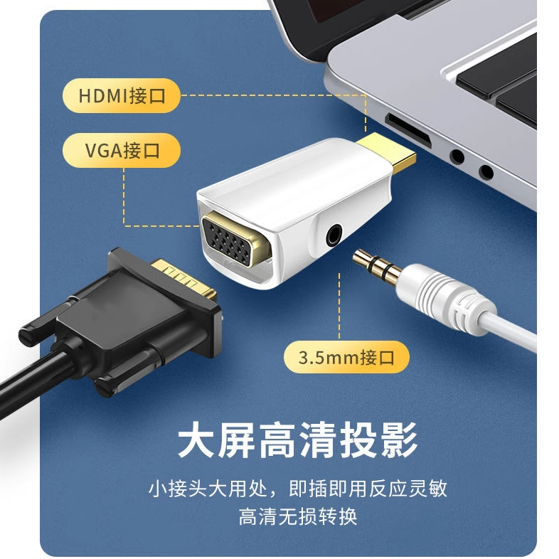 HDMI转VGA转换头音视频同步主机机顶盒接显示器投影仪转接头HDMI
