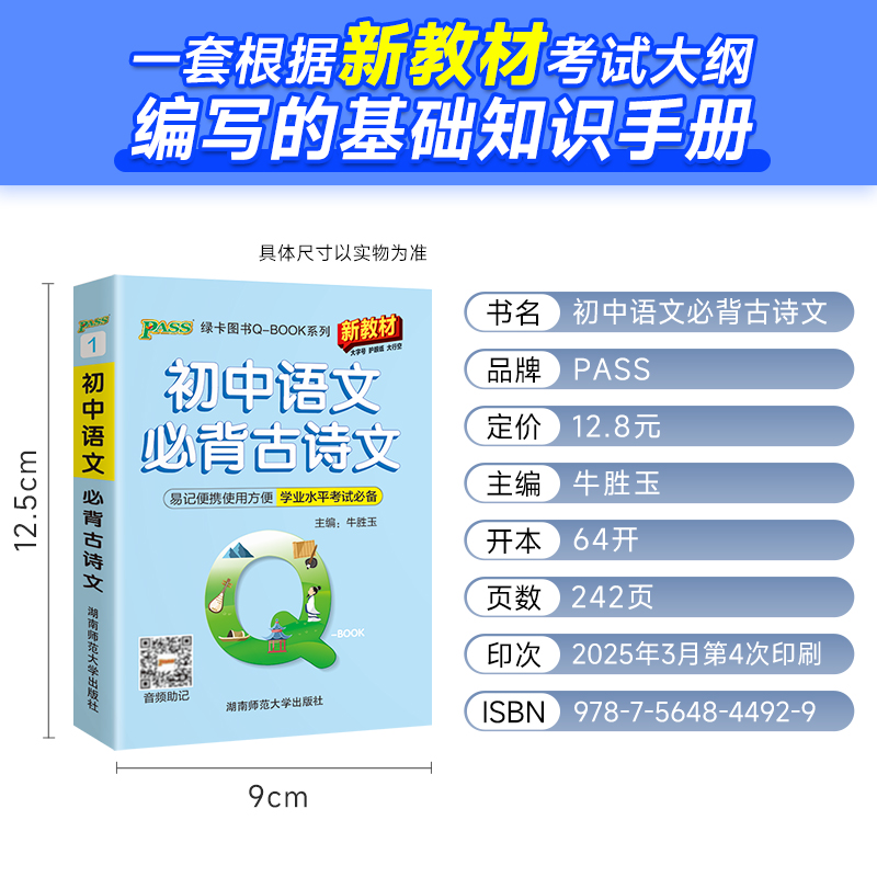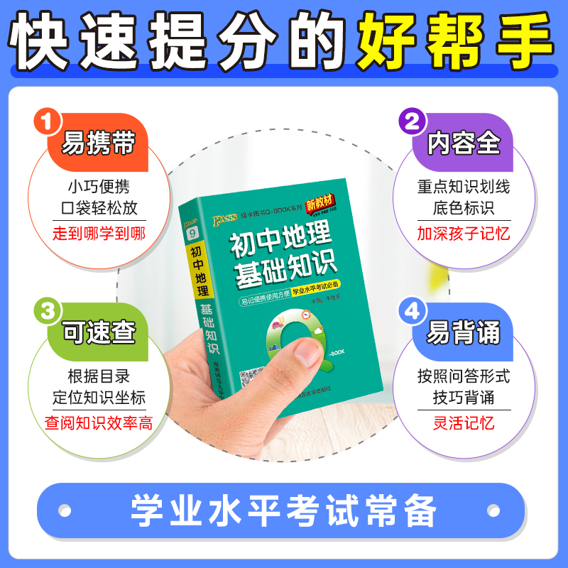 定律地理生物历史道德与法治pass绿卡七八九年级 初中Qbook口袋书基础知识语文必背古诗文英语单词语法数学物理化学公式 新教材