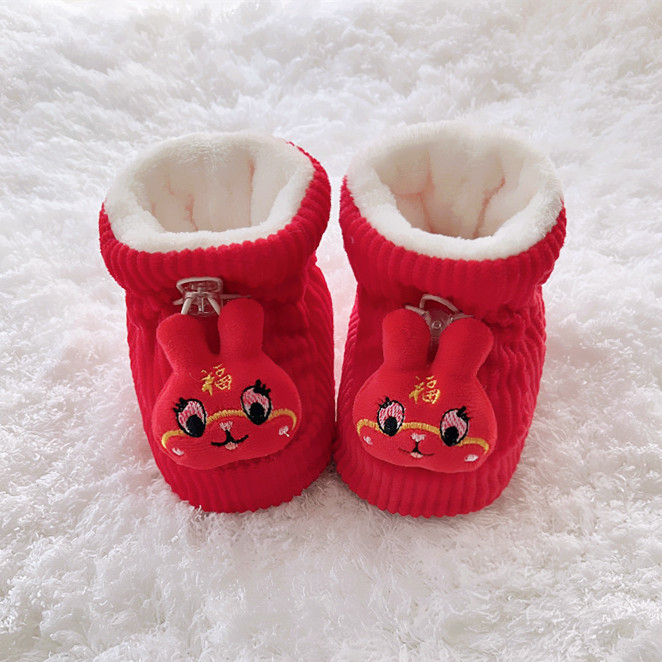 老虎婴儿学步鞋 冬季 步前鞋 加厚保暖灯芯绒棉鞋 大红软底 宝宝虎头鞋