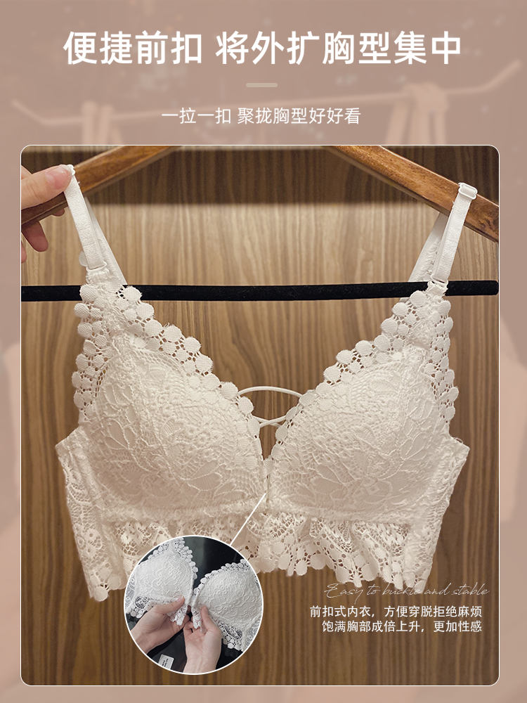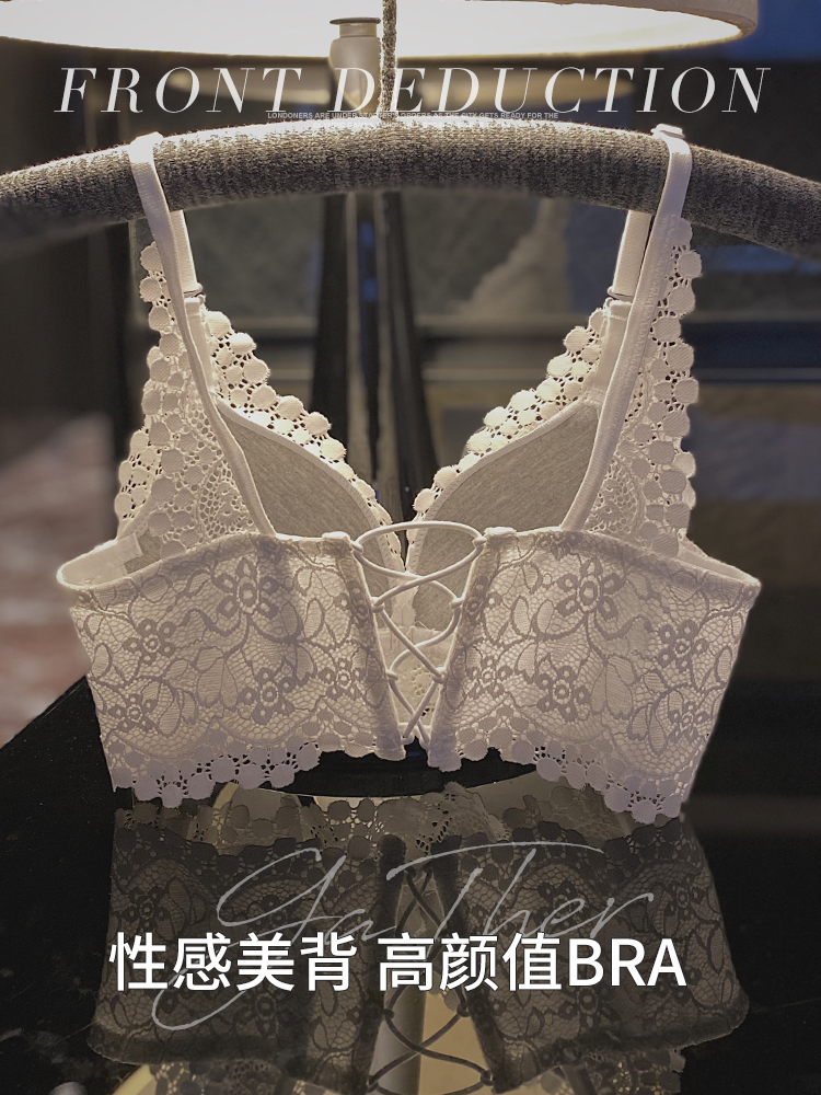 好奇蜜斯蕾丝法式 白三角杯小胸 内衣女美背性感夏薄纯欲文胸罩套装