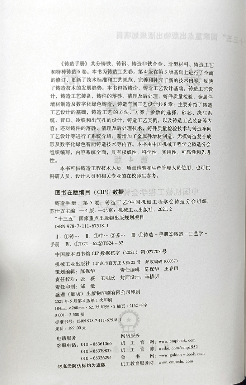 备 铸造车间工艺设计 第5卷 苏仕方 铸造工艺设计 第4版 铸造手册 铸造工艺 铸件质量检验数字化绿色铸造 正版 铸造工艺装 书籍