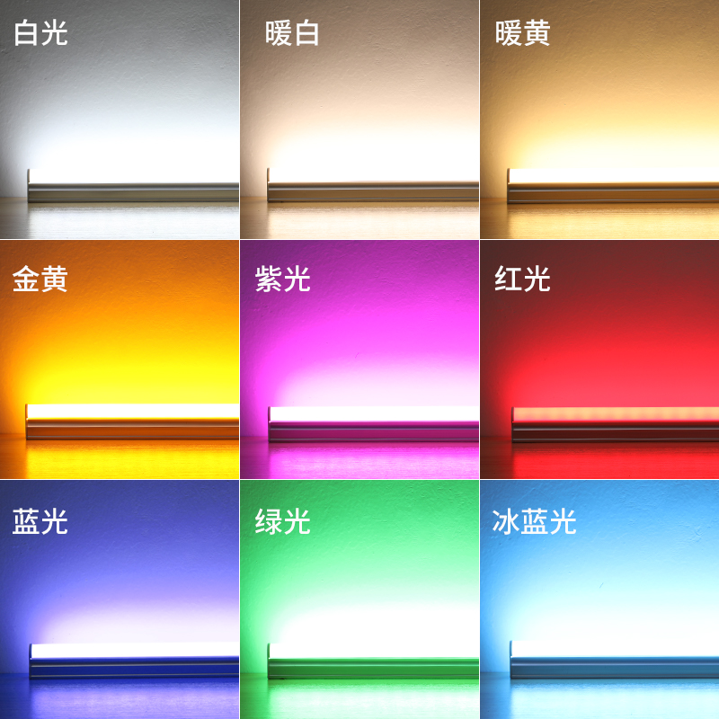 t5一体化led彩色灯管紫色红光冰蓝光KTV酒吧45公分家用长条日光灯