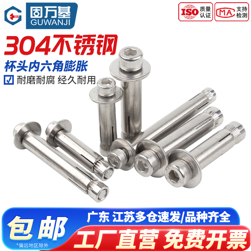 304不锈钢圆柱头内六角膨胀螺丝杯头内拉爆内置膨胀管钉螺栓M6M8