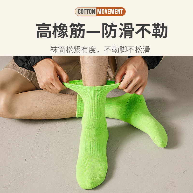 诸暨运动袜子男款 透气吸汗中筒袜防臭青少年长筒袜纯色棉袜 春秋季