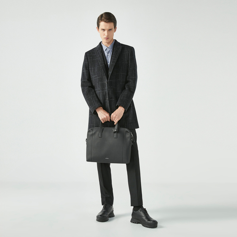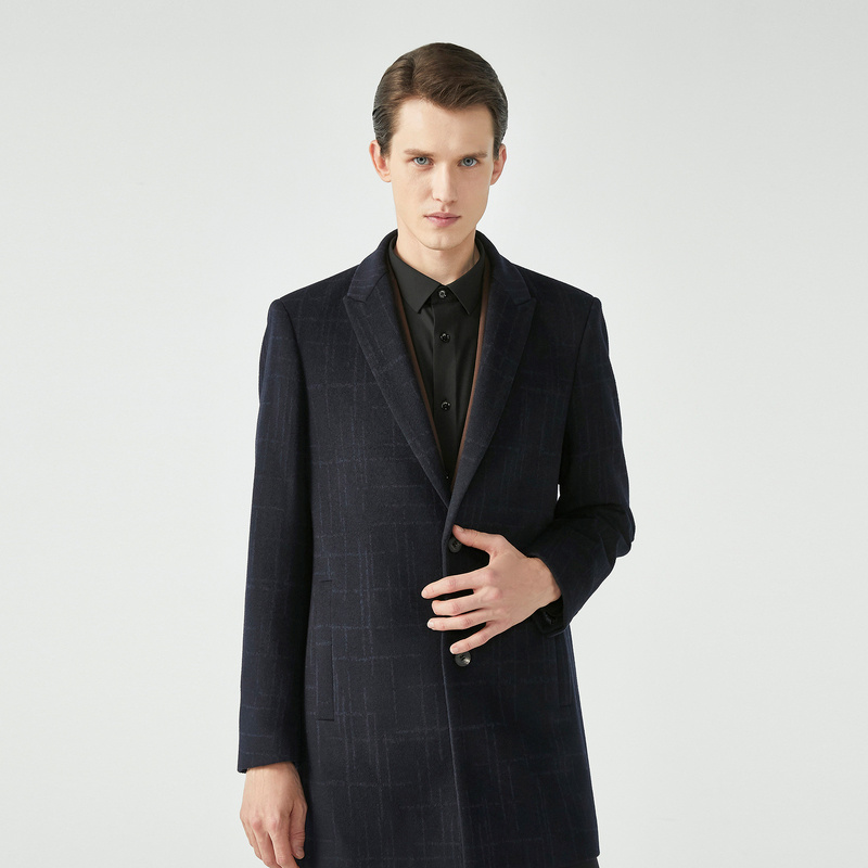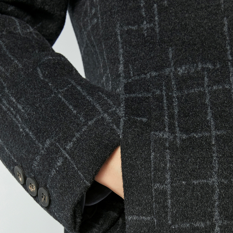 领商务羊毛大衣外套男正品 毛呢秋冬低调格纹西装 男士 劲霸男装