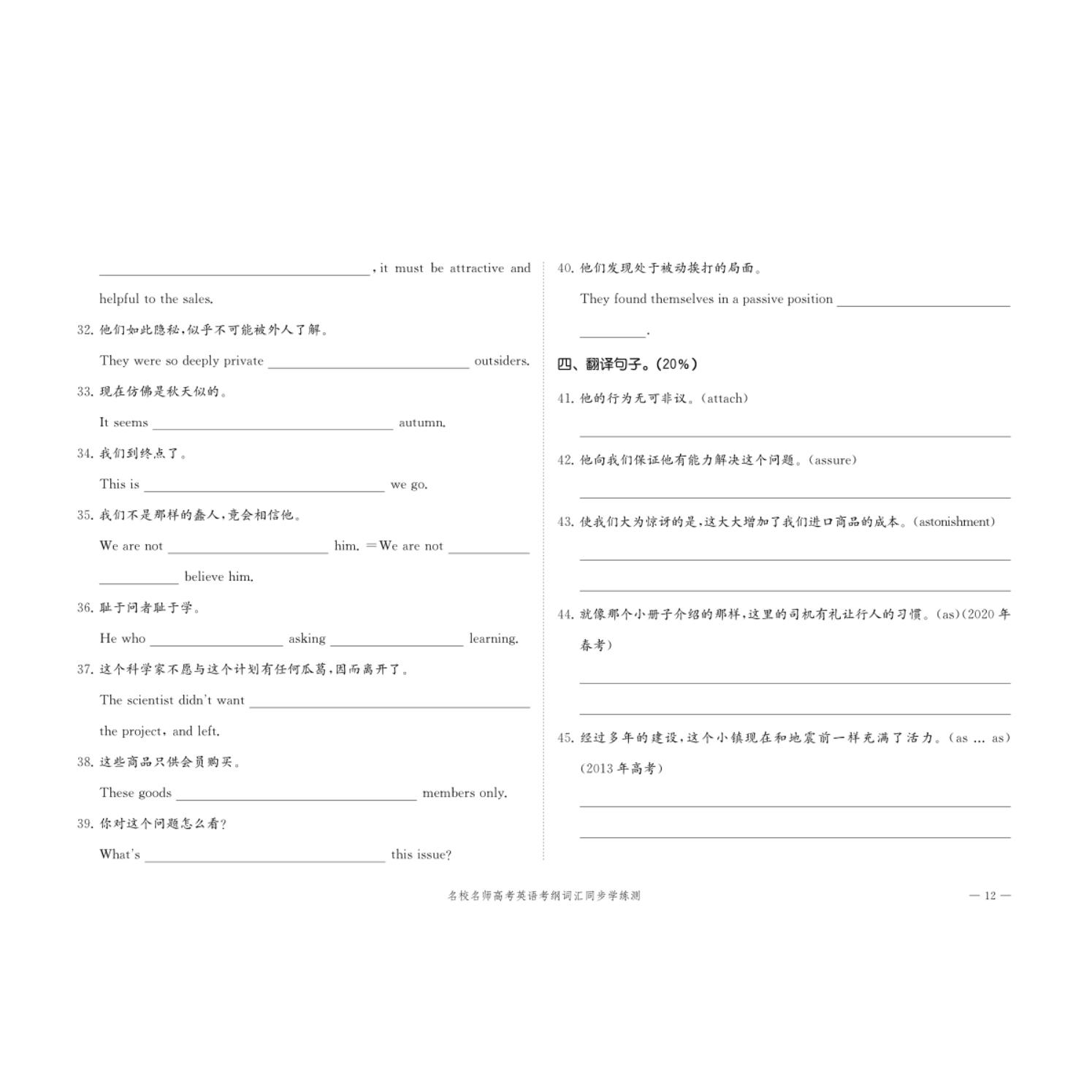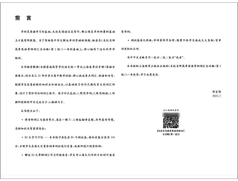 含历年翻译句子考题 80天单词计划;含80套测试卷 扫码 获取词汇外教录音 2024版 上海教育出版 名校名师高考英语考纲词汇同步学练测