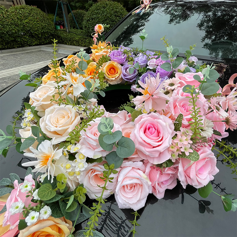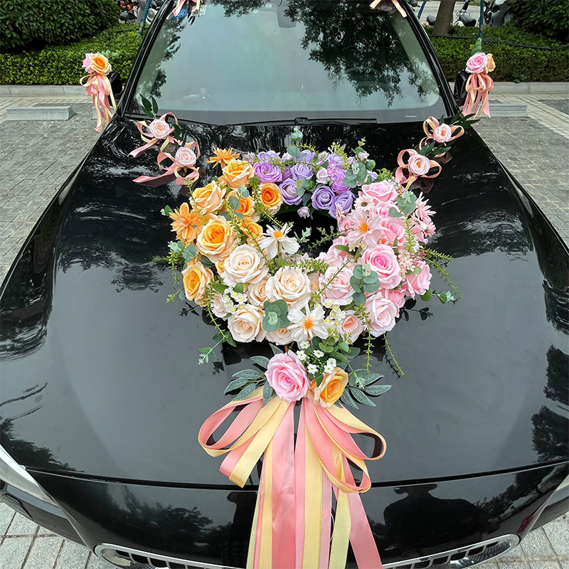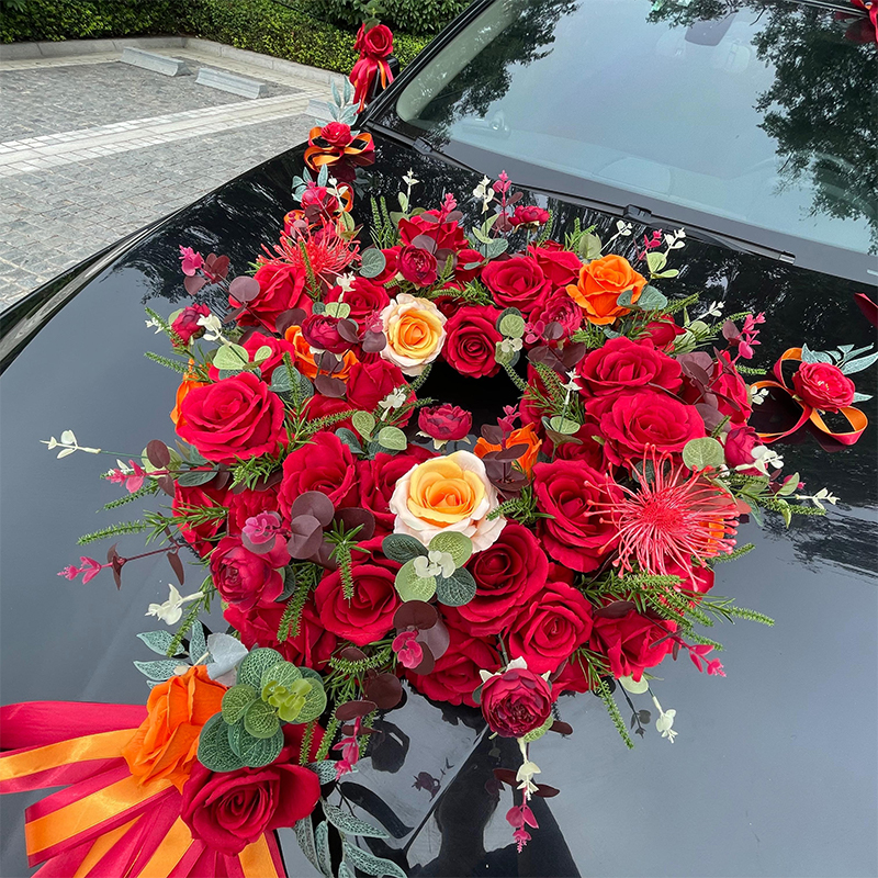 圆环主婚车装 创意仿真花头车布置全套结婚车队主车花 饰车头花套装