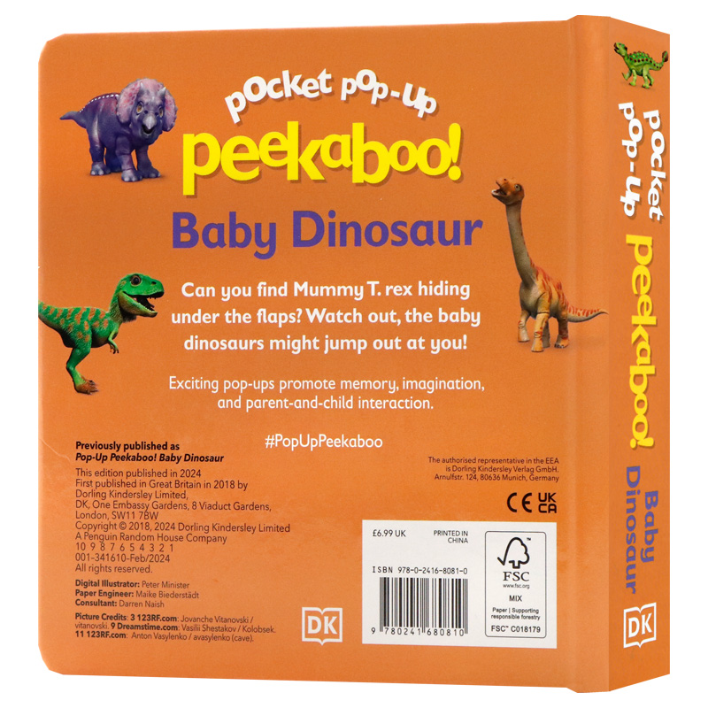 Dinosaur英文原版 Baby 绘本幼儿童英语启蒙撕不烂纸板翻翻书宝宝认知读物亲子互动阅读进口 Up躲猫猫立体书恐龙Peekaboo DK出品Pop