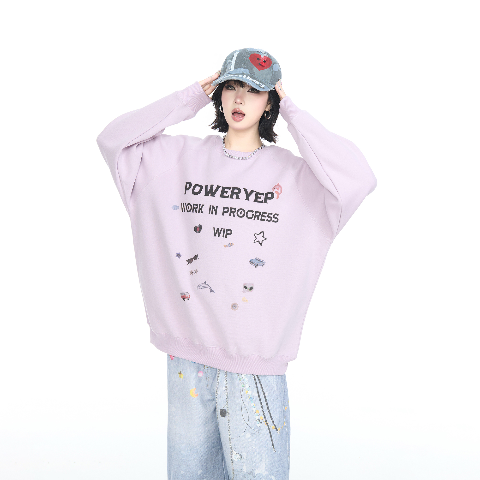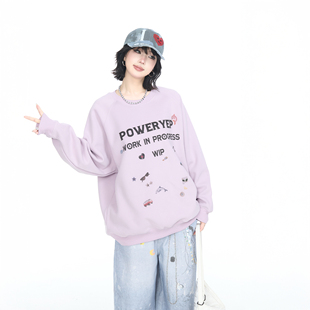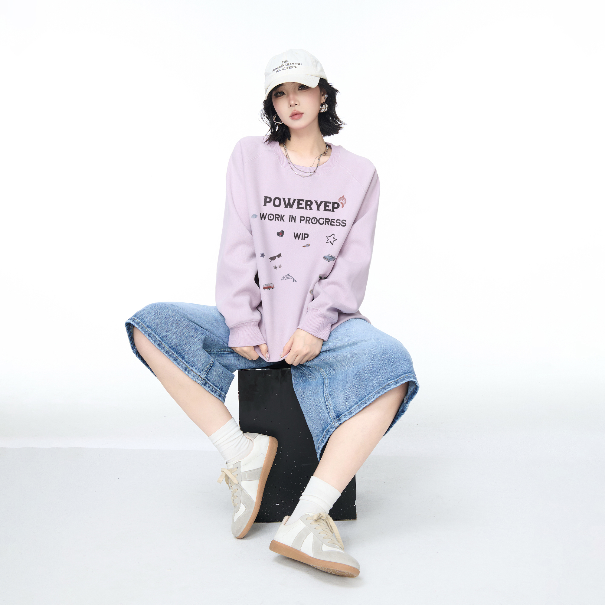 YEP美式 宽松情侣ins套头上衣 潮牌创意印花圆领卫衣女春秋2025新款