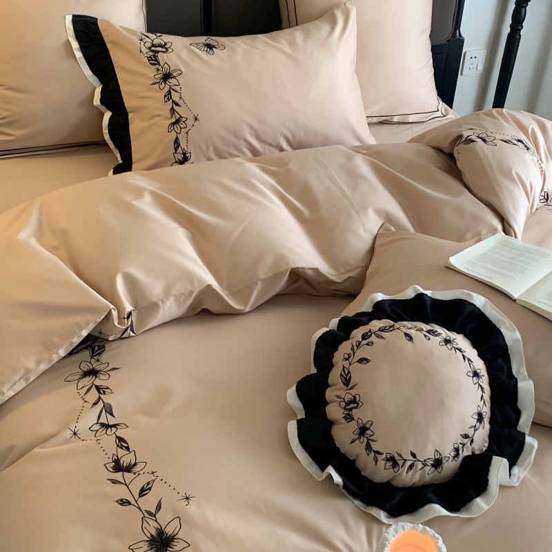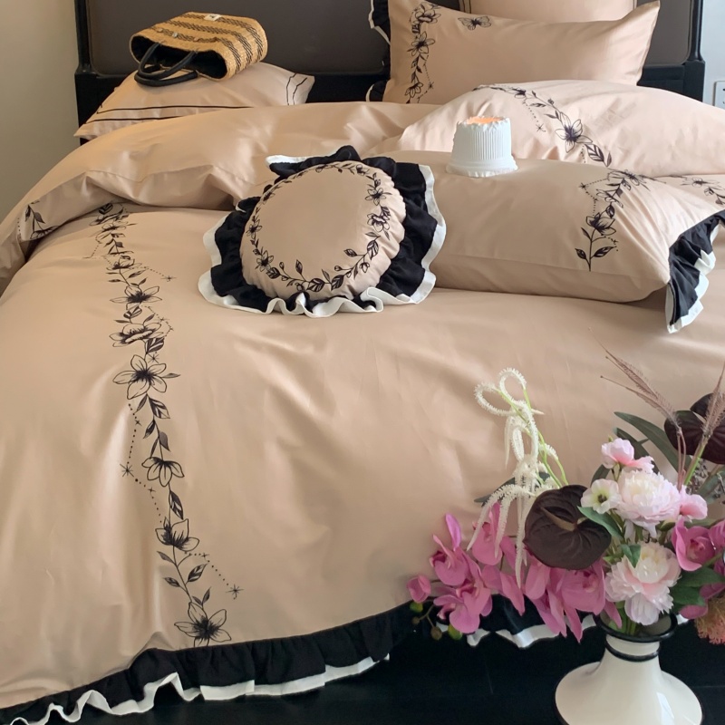 轻奢100S长绒棉刺绣四件套法式 花边全棉被套床单床上用品