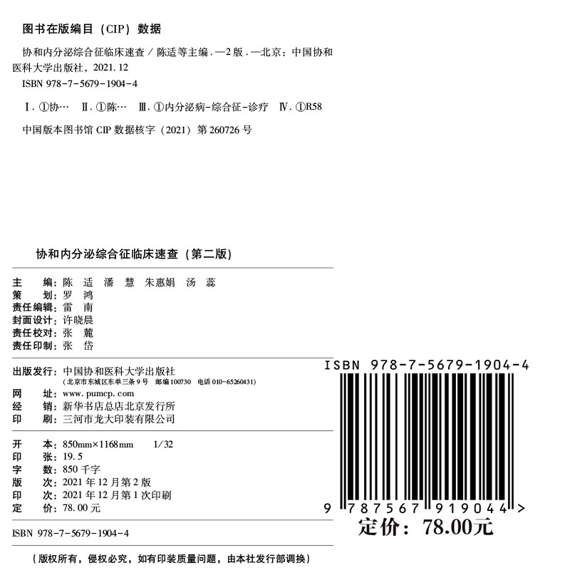 陈适等主编中国协和医科大学出版 第2二版 社9787567919044 协和内分泌综合征临床速查 现货正版