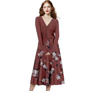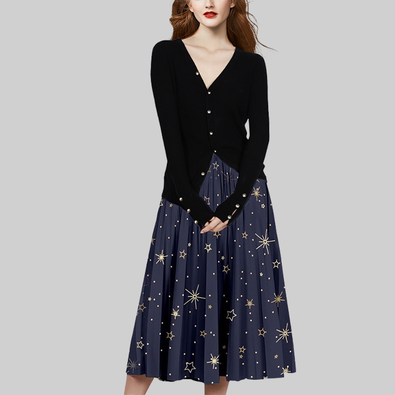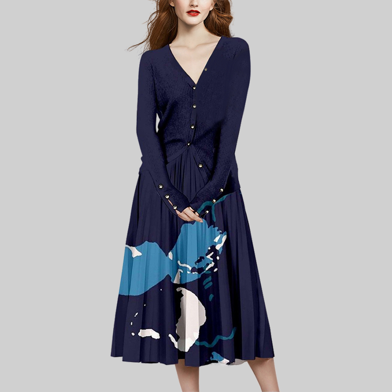 时尚 法式 印花V领外套半身裙两件套 洋气秋冬2025年新款 女神范套装