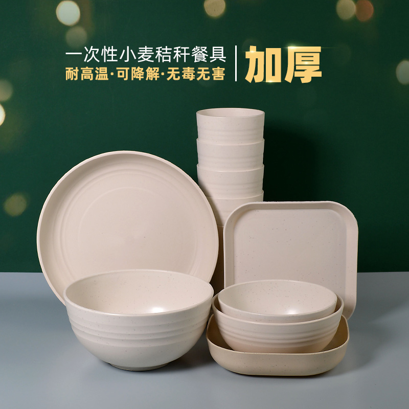 麦秸秆可降解餐具一次性碗筷杯碟加厚菜盘子火锅家用婚宴大汤碗