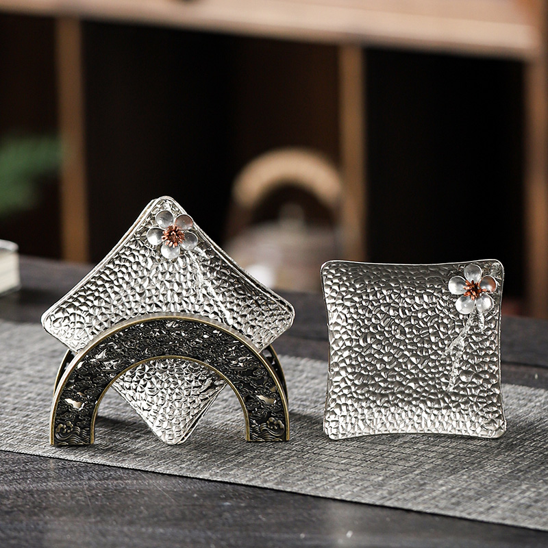 晟窑日式 合金杯垫茶托创意隔热垫金属杯托架梅花茶垫功夫茶具配件