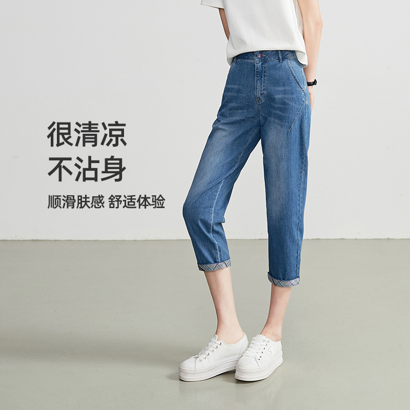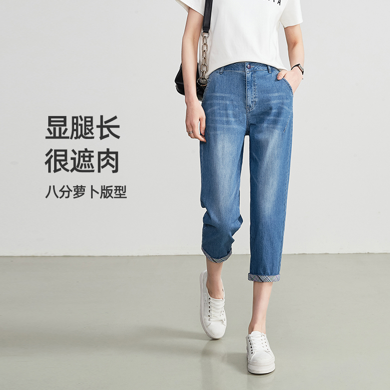 女高腰七八分凉爽透气萝卜老爹裤 逸阳女裤 牛仔哈伦裤 新款 2025夏季